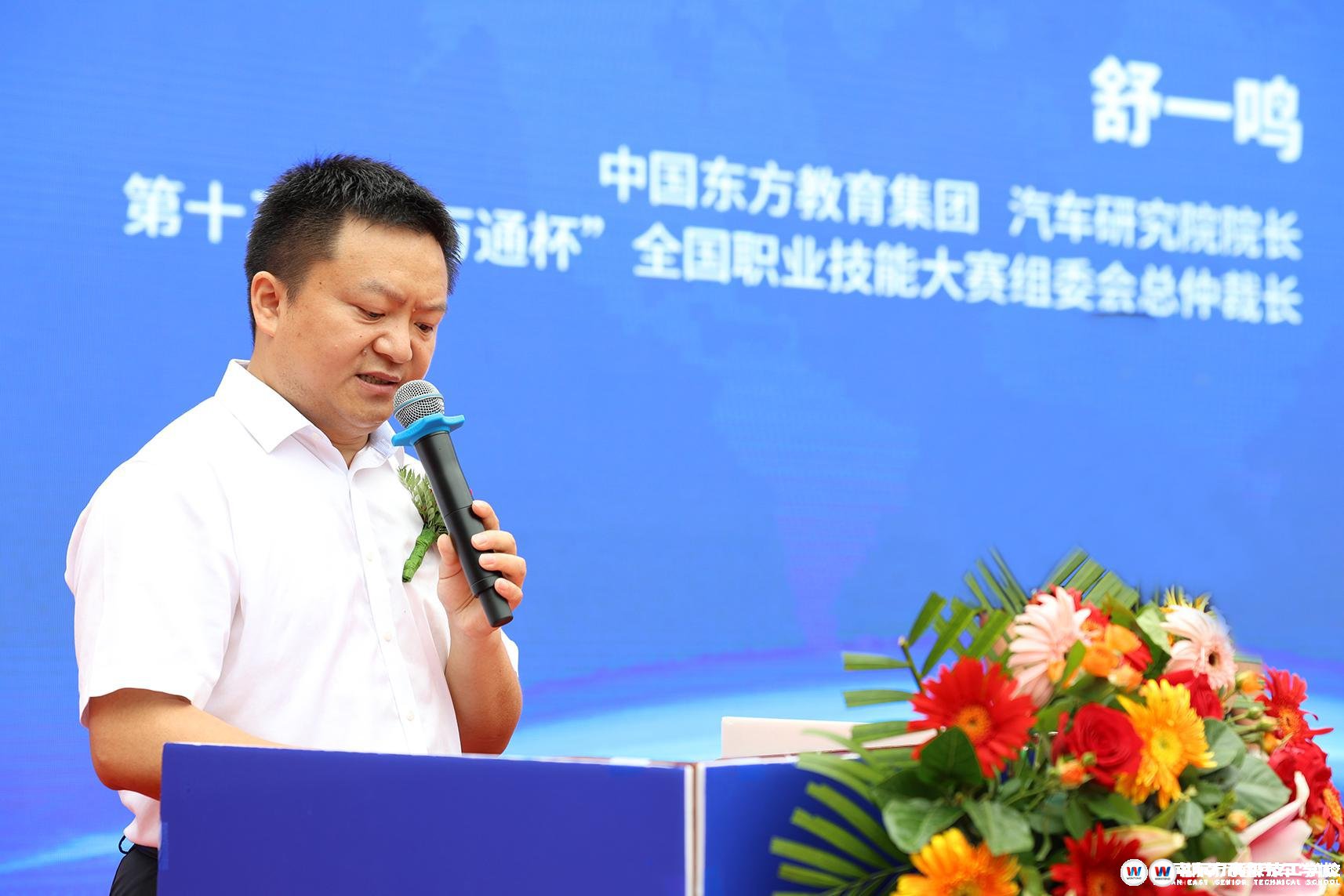 中國(guó)東方教育集團(tuán)汽車(chē)研究院院長(zhǎng)、第十三屆“萬(wàn)通杯”全國(guó)職業(yè)技能大賽仲裁長(zhǎng)舒一鳴在致辭中表示,萬(wàn)通汽車(chē)教育響應(yīng)政府號(hào)召,融聚全國(guó)行業(yè)職教力量,構(gòu)建行業(yè)技能人才選拔交流平臺(tái),以世賽、國(guó)賽標(biāo)準(zhǔn)結(jié)合萬(wàn)通教育教學(xué)特色,以賽促學(xué),為莘莘學(xué)子提供新時(shí)代技能競(jìng)技舞臺(tái),展示萬(wàn)通汽車(chē)教育院校師生風(fēng)采。希望各參賽選手以良好的心理素質(zhì)和精神風(fēng)貌,賽出風(fēng)格,賽出水平。