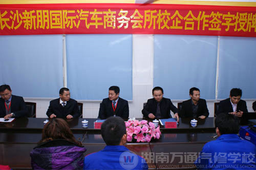 儀式上,湖南萬(wàn)通汽修學(xué)校、新朋國(guó)際商務(wù)會(huì)所在儀式上分別簽署了校企合作意向書,雙方被授予 “人才培訓(xùn)基地”“人才定點(diǎn)實(shí)習(xí)基地”的稱號(hào)。授牌儀式的正式開展標(biāo)志著湖南萬(wàn)通汽修學(xué)校與新朋國(guó)際商務(wù)會(huì)所校企合作關(guān)系的正式確立。