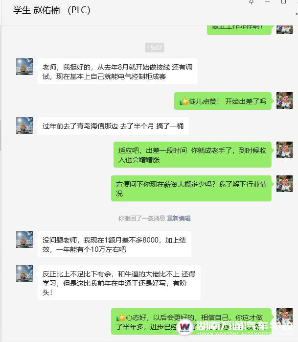 后來他下定決心轉(zhuǎn)行學(xué)習(xí) PLC 技術(shù),在湖南萬通經(jīng)過系統(tǒng)學(xué)習(xí)后,成功進(jìn)入株洲一家自動化企業(yè)。據(jù)他反饋,從去年8月入職,他的月薪已經(jīng)達(dá)到了8000+,目前年薪超10萬元,還經(jīng)常收到其他企業(yè)拋出的橄欖枝,薪資待遇不斷攀升。像這樣的例子在行業(yè)里數(shù)不勝數(shù)。