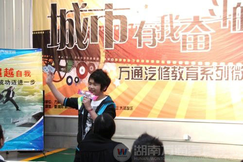 “喂,我是在戰(zhàn)場(chǎng)上的一個(gè)兵。啊!什么?你竟然是10086?”。4月21日晚舉行的湖南萬通汽修學(xué)校微電影演員選拔賽中,萬同學(xué)表演的“絕處逢生”讓臺(tái)下的觀眾忍俊不禁。“青春有夢(mèng)就飛揚(yáng)”。舞臺(tái)上,20名選手施展著各自苦練多時(shí)的表演才藝,憑著一股股不服輸?shù)膭艣_刺著最后的決賽,最終冠、亞、季軍的寶座被李文雅、汪旭、萬勇剛收入囊中。