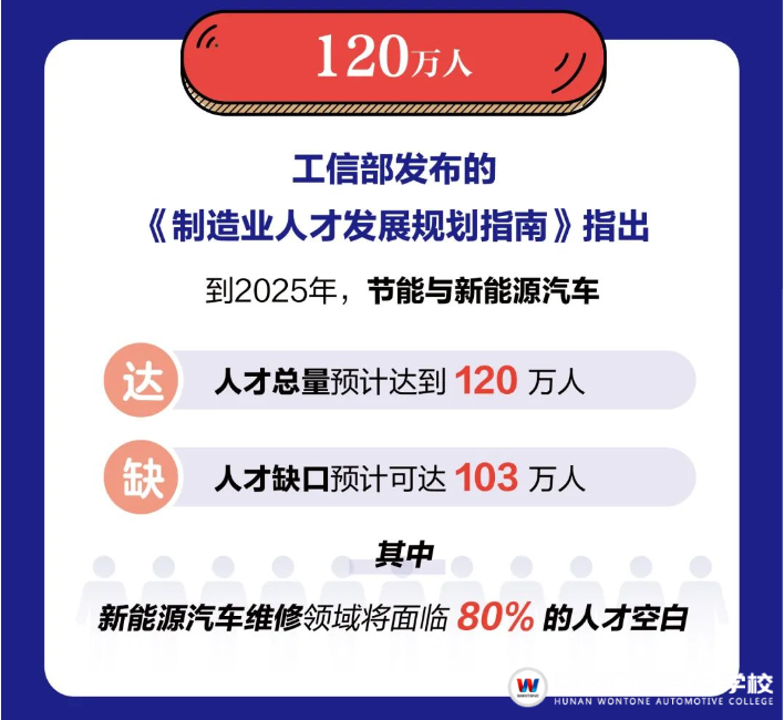 工信部發(fā)布的《制造業(yè)人才發(fā)展規(guī)劃指南》指出,到2025年,節(jié)能與新能源汽車的人才總量預(yù)計(jì)達(dá)到120萬(wàn)人,但人才缺口預(yù)計(jì)可達(dá)103萬(wàn)人。其中,新能源汽車維修領(lǐng)域?qū)⒚媾R80%的人才空白。