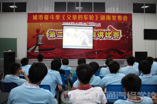 《修車》的勵志風(fēng)還未散去,感人至深的《父親的車輪》已在湖南萬通汽修學(xué)校的校園里掀起了感恩父親之潮。在《城市 有我奮斗的青春》之《父親的車輪》微電影發(fā)布會上,師生們臉上泛著晶瑩的淚光,“影片中的爸爸演的很真實,父子之間的感情也很細(xì)膩,很能觸動人的內(nèi)心。”在現(xiàn)場觀看的宋老師已被劇中的溫情所打動。而縱觀發(fā)布會全場,也是亮點十足,花絮多多。