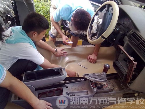 汽檢一班的同學(xué)們整車實(shí)訓(xùn)中