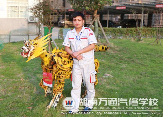 隆峰自小就愛(ài)拆裝,像是家里自行車(chē)、DVD機(jī)、遙控器等等,皆是難逃“魔掌”,但同時(shí)也造就了他的極好的動(dòng)手能力與興趣累積!來(lái)到了湖南萬(wàn)通的第一天,隆峰就很是歡喜,因?yàn)檫@所汽修學(xué)校,完全是與腦海中的美好想象100%的極度吻合了,無(wú)論是環(huán)境、設(shè)備、氛圍等等,皆是他所愛(ài)的技術(shù)樂(lè)園!而因之前的摩托維修經(jīng)驗(yàn),隆峰更是“如魚(yú)得水”般自由自在地徜徉在這舒適的學(xué)習(xí)海洋中,學(xué)汽修這則“法門(mén)”完全是遂心應(yīng)手的暢快!