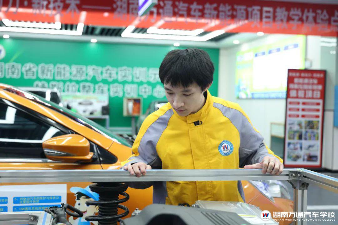 經(jīng)過(guò)深思熟慮,陳柯銘決定重返校園。他對(duì)比了多個(gè)專(zhuān)業(yè),最終選擇了汽車(chē)智能網(wǎng)聯(lián)技術(shù),湖南萬(wàn)通的這個(gè)專(zhuān)業(yè)僅需要學(xué)習(xí)18個(gè)月,實(shí)訓(xùn)為主的課堂模式也非常適合零基礎(chǔ)的新人,完全符合陳柯銘的需求。在湖南萬(wàn)通,他如饑似渴地學(xué)習(xí)著汽車(chē)構(gòu)造、電子控制、智能系統(tǒng)等專(zhuān)業(yè)知識(shí),每天在實(shí)訓(xùn)車(chē)間待到很晚。