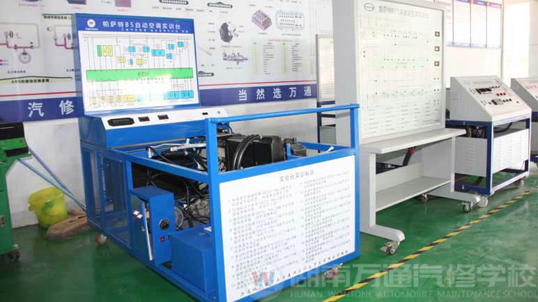 湖南萬通汽車學校為讓學生掌握汽車電器系統(tǒng)元部件的檢測、維修等技能,專門購置三十多臺包含德、美、日、中、韓五大車系汽車電控實訓設備,其中主要有:豐田、本田、大眾、通用、現(xiàn)代、福特等電控實訓臺。電控實訓中心占地面積達到300平方米,可供數(shù)十組學習維修小組同時進行學習和實際操作。