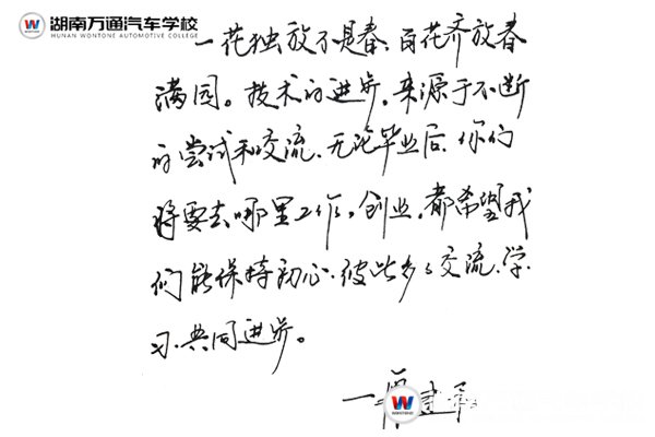 古語(yǔ)有云:師者,傳道、受業(yè)、解惑也。而新時(shí)代的老師,不再局限于技術(shù)、學(xué)識(shí)的傳授,更是將這份師者的責(zé)任帶到了生活中、工作中。“一日為師,終生為師。”這是我們新時(shí)代教師的標(biāo)榜,更是我們湖南萬(wàn)通汽車學(xué)校的驕傲。