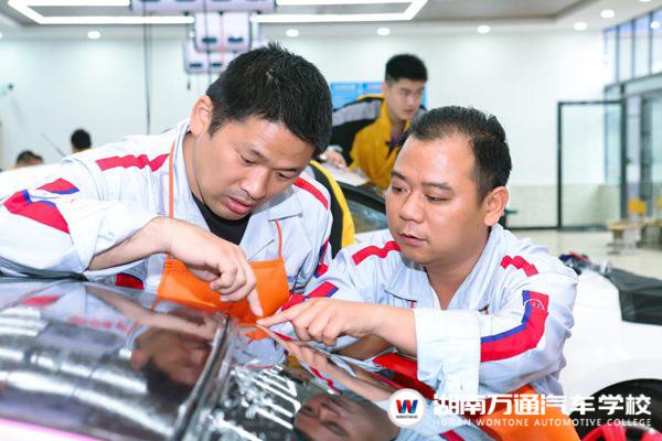 辨別一款膜的質量,并不是只看價格那么簡單。要從它的拉伸度和回彈度來辨別。拉伸度越好,同時回彈度也越好的膜,是一款好膜的標準。”余老師一邊實操一邊給學生詳細講解。站在旁邊的學生聽的非常認真。剛來一個星期的學生包太兵說:“我自己就是開汽車美容店的,雖有經驗,但還是沒有余老師專業(yè)。”